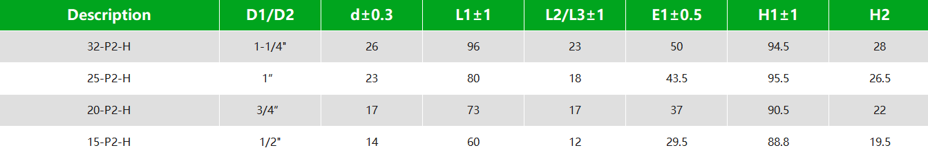 NPT/BSP/No Thread Glued Type 1/2” 3/4” 1” 11/4”(Optional)