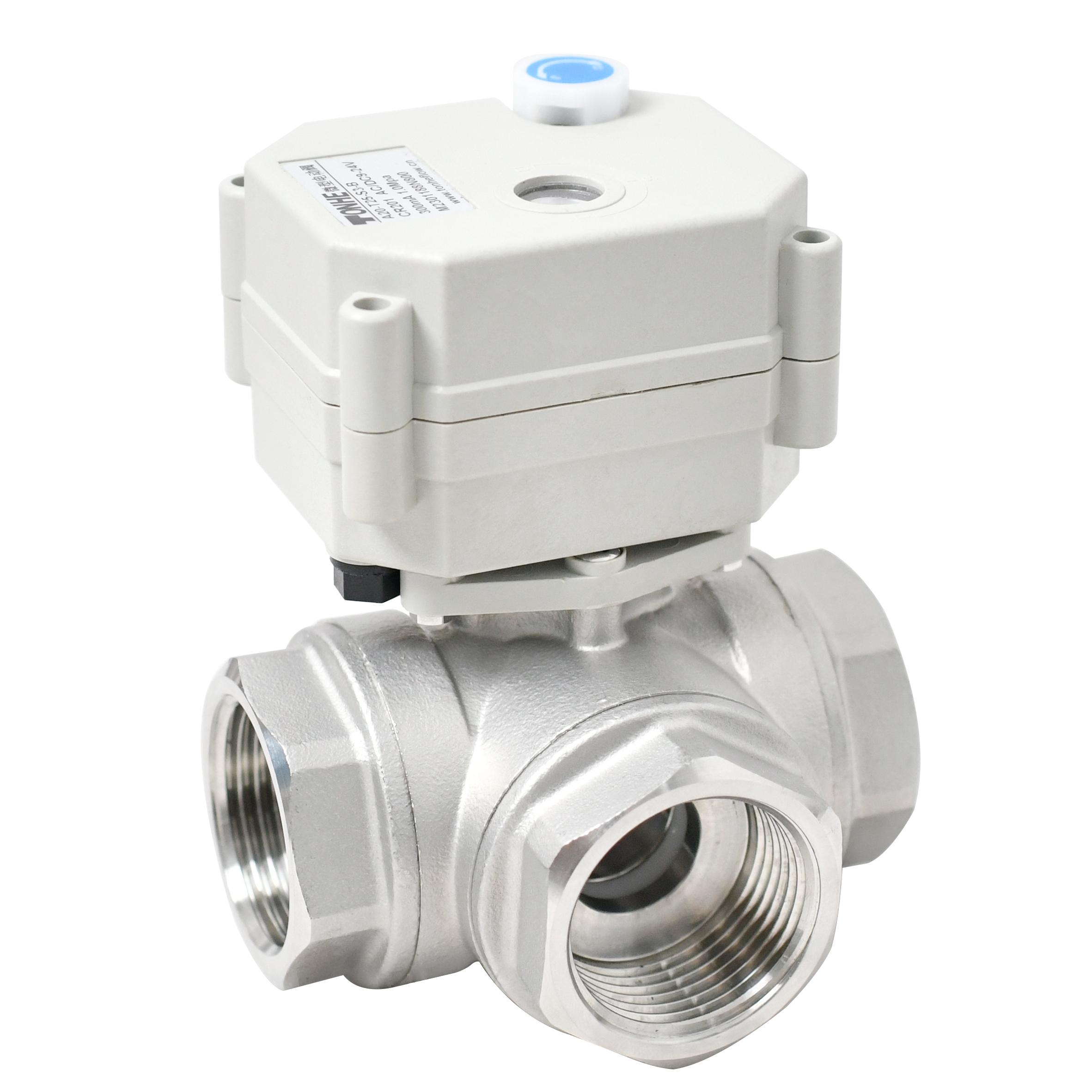 Switching type -With indicator & manual override,1” SS304 3 way electric valve