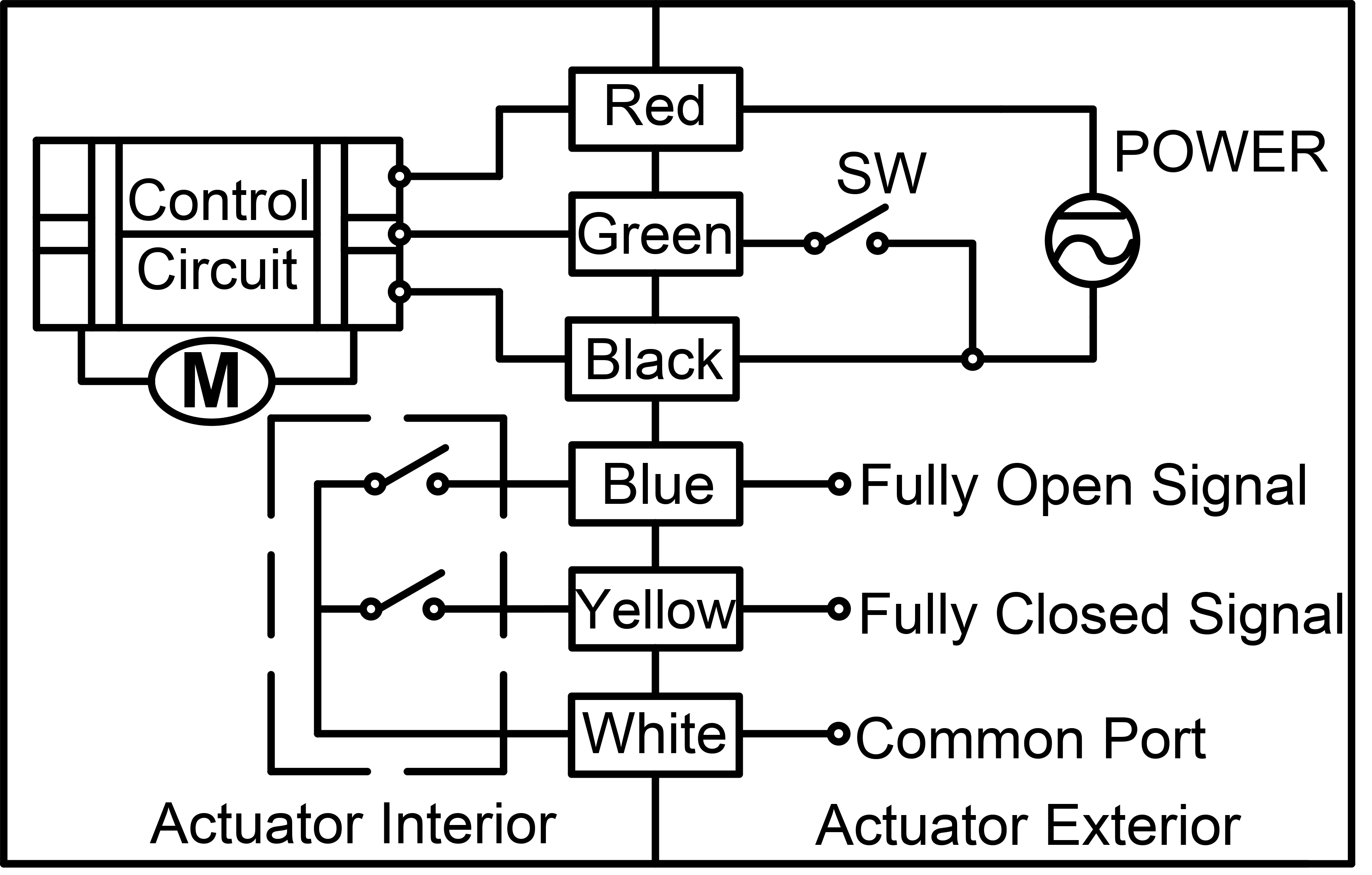 3. SW connect with Green, vave CLOSE, maintain after fully closed, Yellow connect with White.